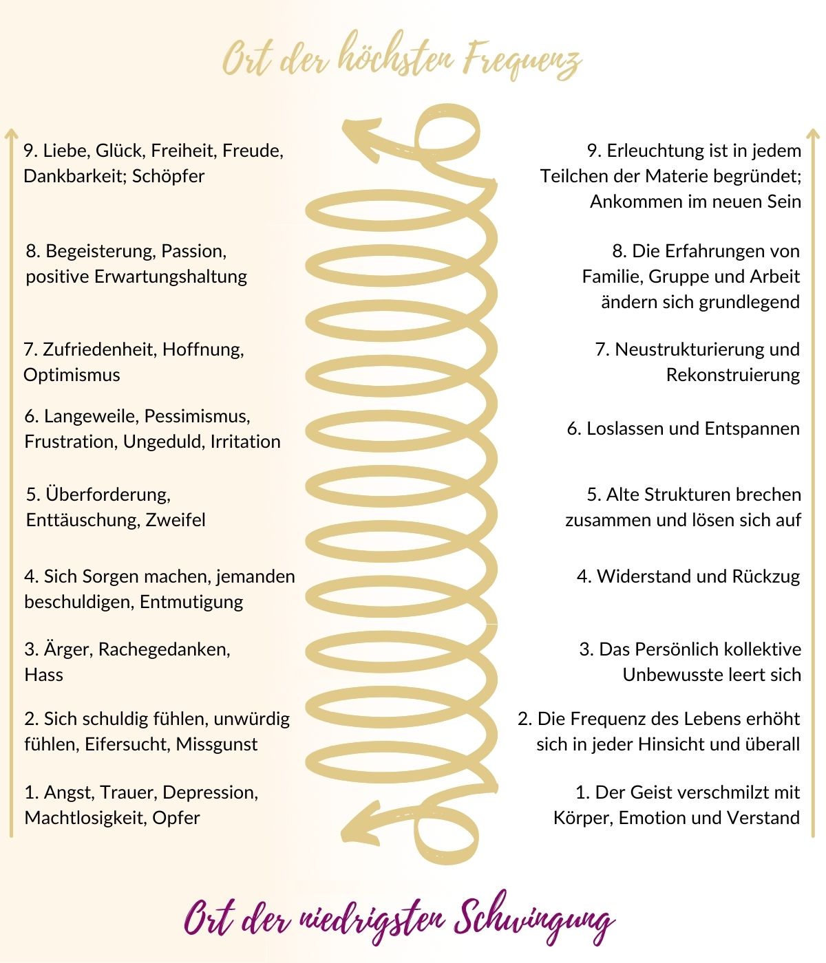 Diese Phasen sind der Weg natürlicher Transformation von einem Ort niederer Schwingung zu einem Ort höchster Schwingung. Als Healing Effect® Coach kannst Du erkennen, in welcher Phase Du selbst oder Deine Kund*innen sind.